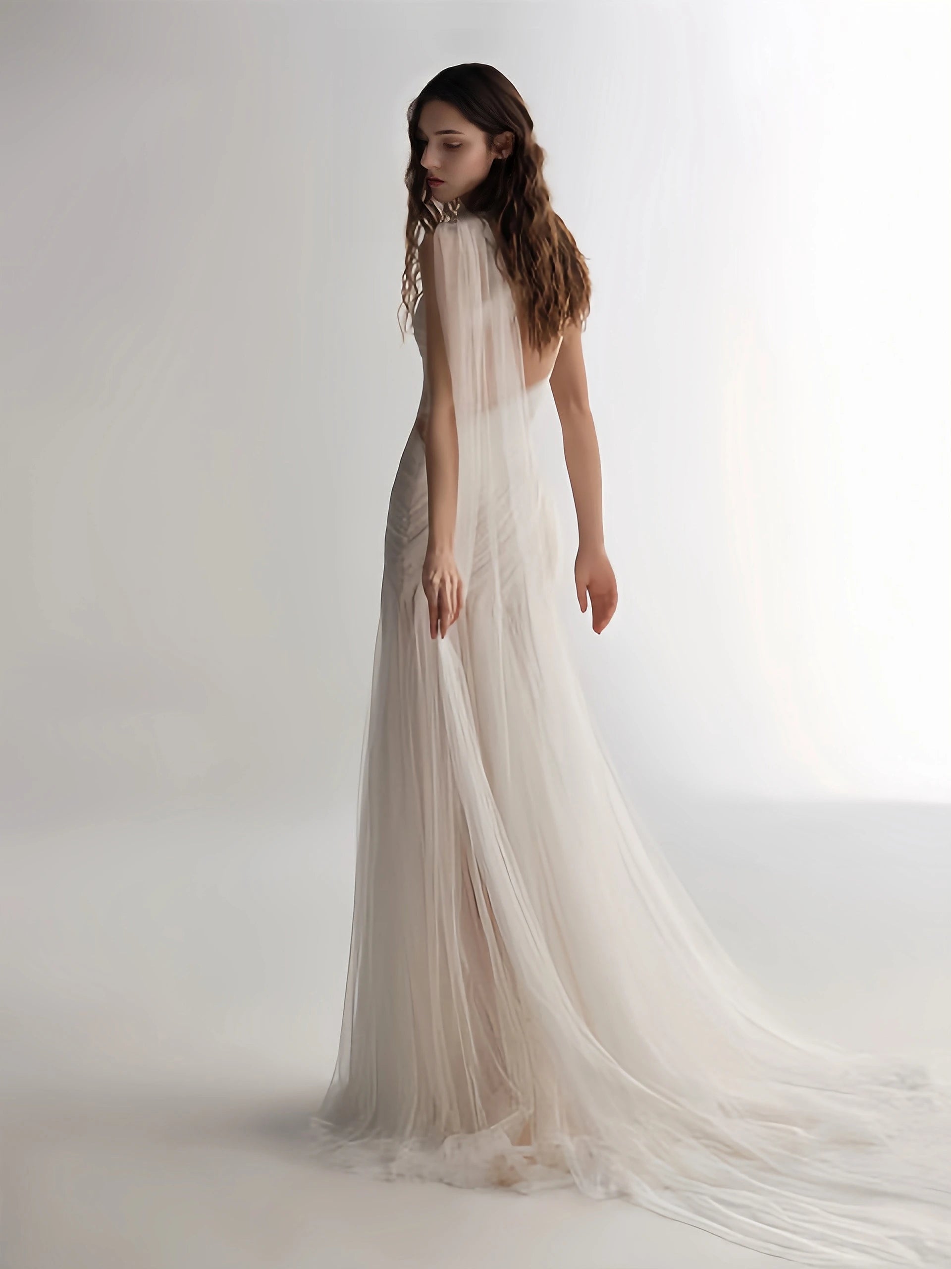 Elegant White Evening Dress A-Line Bandeau Sexy Backless Strapless Sleeveless Pleated Tulle Special Occasion Party Dress
