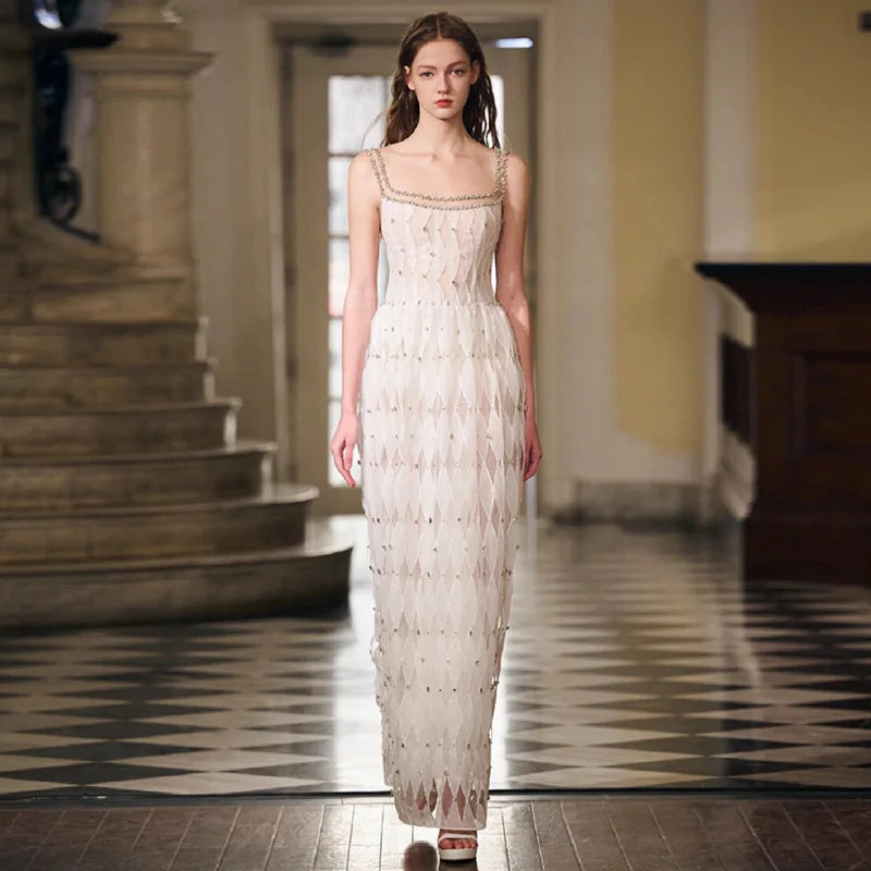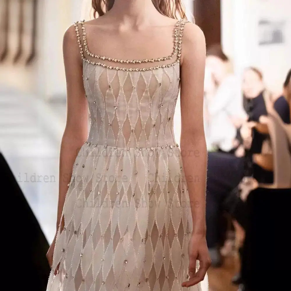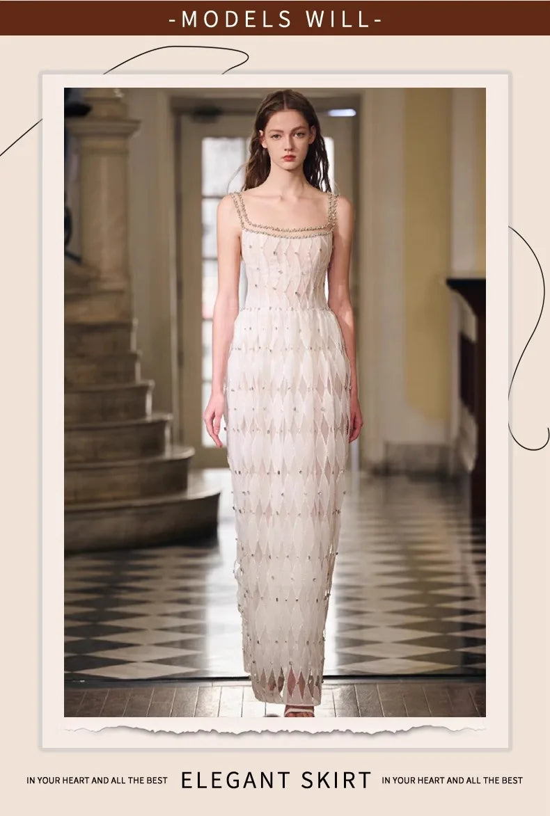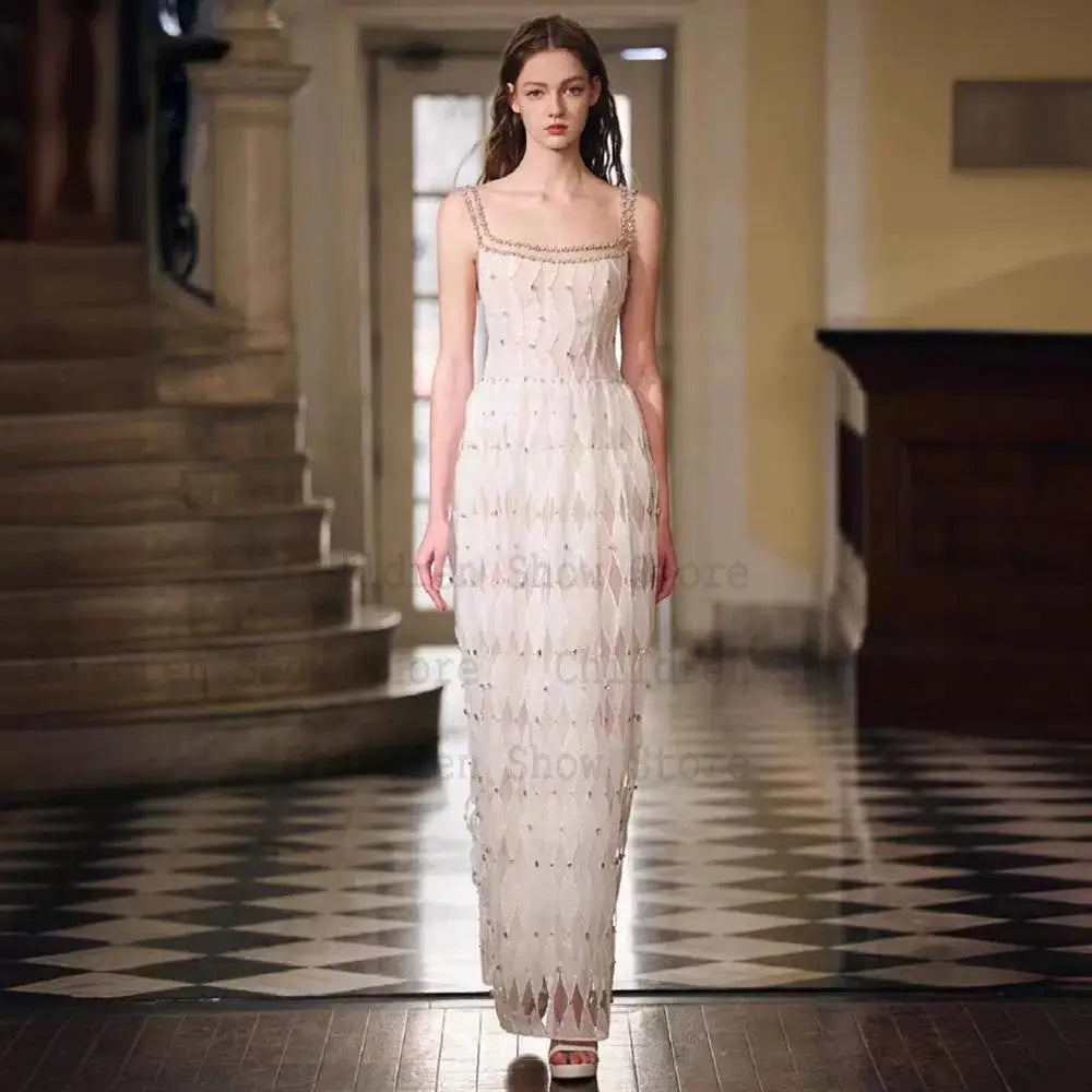 Women Elegant Strapless Vestidos Evening Party Robes French Style Spaghetti Strap Bling Rhinestones Chesongams Lady Sexy Qipao